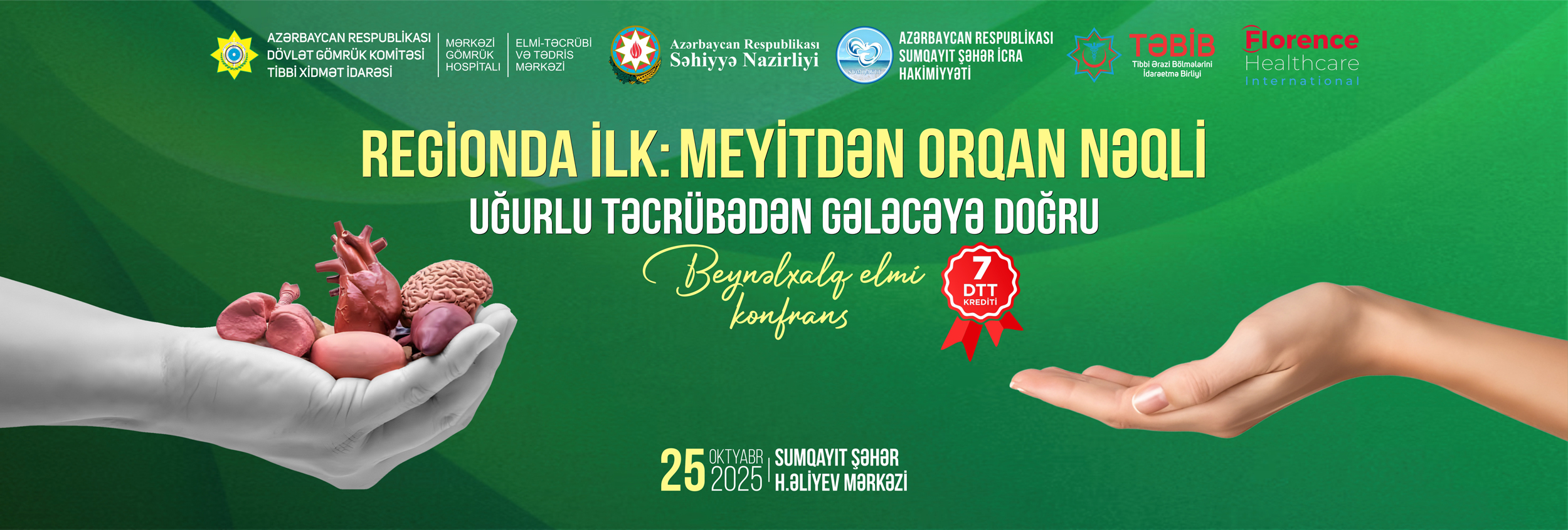25 oktyabr 2025-ci il tarixində Dövlət Gömrük Komitəsinin Tibbi Xidmət İdarəsinin Elmi Təcrübi və Tədris Mərkəzinin, Mərkəzi Gömrük Hospitalının və rəsmi tərəfdaş Florence Healthcare İnternational Qrupun birgə təşkilatçılığı, Azərbaycan Respublikası Səhiyyə Nazirliyinin Orqan Donorluğu və Transplantasiyası üzrə Koordinasiya Mərkəzinin və TƏBİB-in dəstəyi ilə Sumqayıt şəhər H.Əliyev Mərkəzində “Regionda İlk: Meyitdən Orqan Nəqli – Uğurlu Təcrübədən Gələcəyə Doğru” mövzusunda Beynəlxalq Elmi Konfransın həyata keçirilməsi planlaşdırılır.