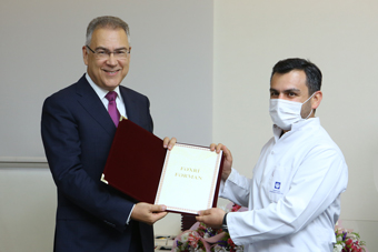 В конце мероприятия отличившиеся сотрудники были награждены специальными званиями, почетными грамотами и значками Государственного таможенного комитета, Министерства здравоохранения и управления медицинской службы Комитета.