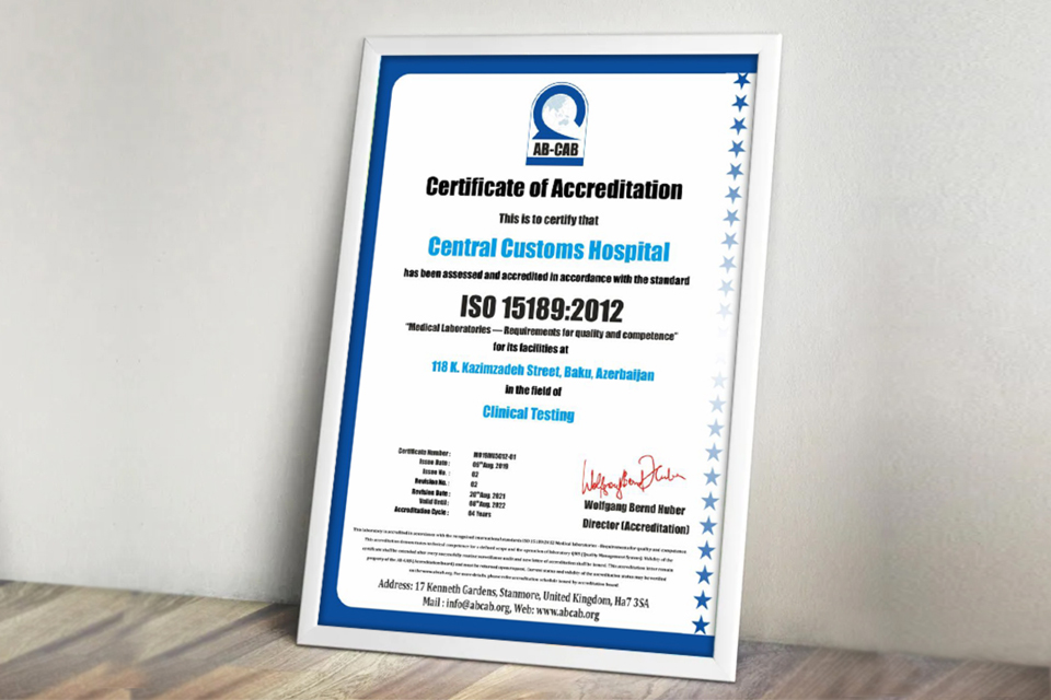 Во второй раз с успехом завершился аудит по аккредитации Медицинской лаборатории Центрального Таможенного Госпиталя на соответствие международному стандарту качества ISO 15189:2012 “Медицинские лаборатории. Требования к качеству и компетентности”. По результатам аудита было подтверждено соответствие Медицинской лаборатории Центрального Таможенного Госпиталя международному стандарту качества ISO 15189:2012.
