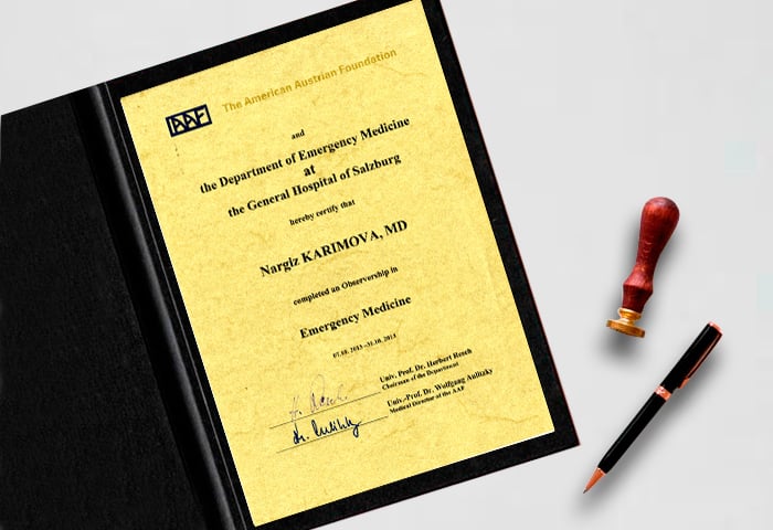 Проходила интернатуру по специальности врач-терапевт в Азербайджанском Медицинском Университете.