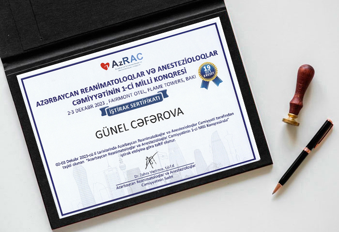 Азербайджанский Медицинский Университет, резидентура по специальности “анестезиолог-реаниматолог” (на клинической базе Центрального Таможенного Госпиталя)