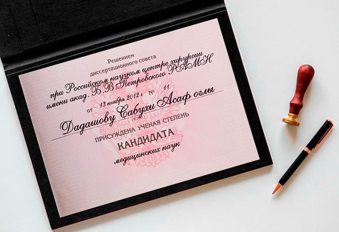 01.07.2015 Решением Высшей Аттестационной Комиссии при Президенте Азербайджанской Республике присвоена научная степень доктора философии по медицине
